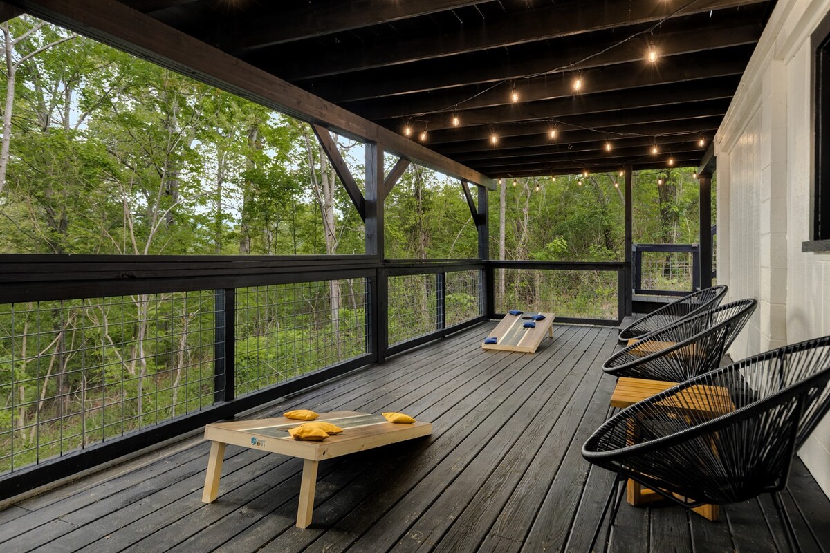 享受我們在Luray的湖景小屋(無湖泊通道),靠近Shenandoah國家公園,設施包括電壁爐、按摩浴池、火坑、公園式烤架、兩個戶外用餐區、露臺休息室、沙灘、帶沙灘球桌的遊戲室、帶412個遊戲的街機遊戲、沙包和客廳的棋盤遊戲(大富翁、西洋棋、Jenga和UNO)。我們提供免費Wi-Fi和55吋電視。即使天氣不合作,您也會玩得很開心!