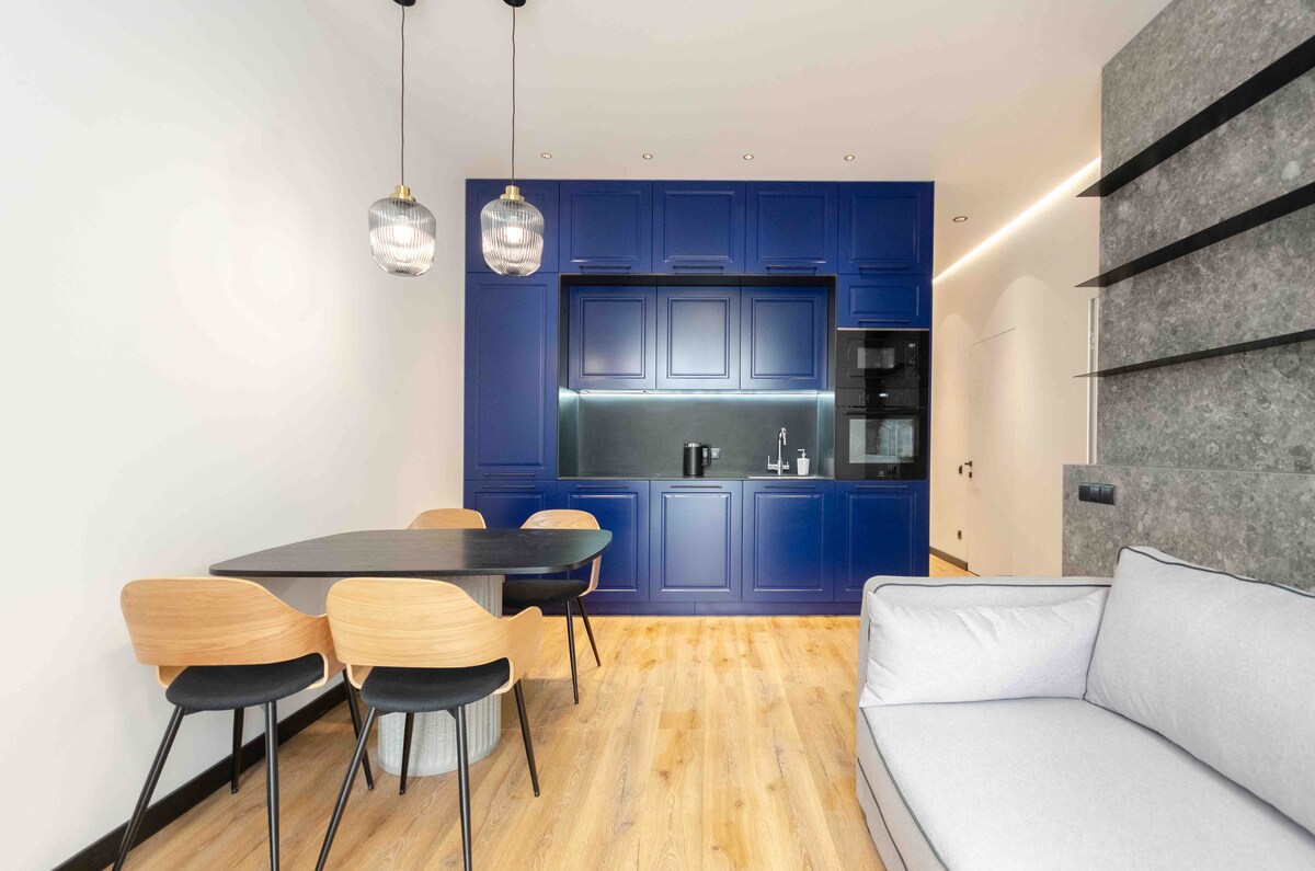 Hi there! My name is Julia and I am excited to welcome you at my brand-new designer apartments (32 sqm) in Kiev. I am pleased to share with you this stylish contemporary apartment features an open-concept layout, wood surfaces, and tasteful decor. Here you can find everything you might need for your stay - high quality bed linen, hairdryer, iron, bath accessories and more. Feel free to start your day with a cup of a lovely coffee or tea of your choice as a compliment for your stay. Welcome home!