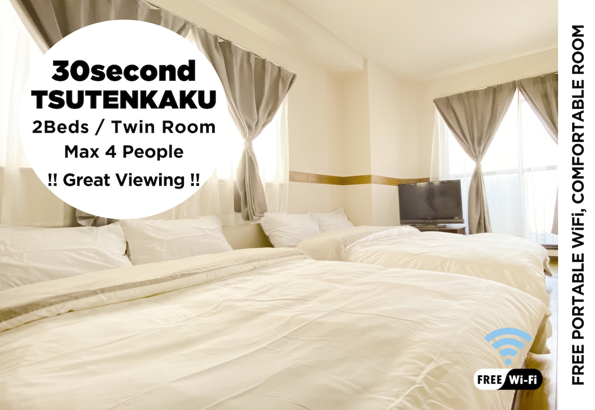 大阪の下町・新世界で暮らすように旅しよう。 大阪の名所・通天閣まで徒歩3分! お部屋は広々100㎡ 最寄駅まで徒歩1分 観光地でありながら、地下鉄、JR、南海電車もある便利なエリアです。 電車乗車時間: 難波駅 5分、大阪/梅田駅 15分、USJ 16分、 薬局、コンビニ、24時間スーパー・ディスカウントショップ、銭湯もあります。 100㎡の1フロア貸切! 2ベッドルーム。 WIFI無料 ダブルベッド4台 ※お部屋へは階段でしか行けません。 注意:片側の寝室の壁内には配水管があります。排水の音が聞こえることがあります。 近隣の駅 恵美須町駅・動物園前駅・今宮戎駅・新今宮駅 駅から観光地までの乗車時間 なんば 5分 梅田駅(大阪駅)15分 大阪城16分 ユニバーサルスタジオ16分 海遊館17分 関西空港36分 嵐山52分