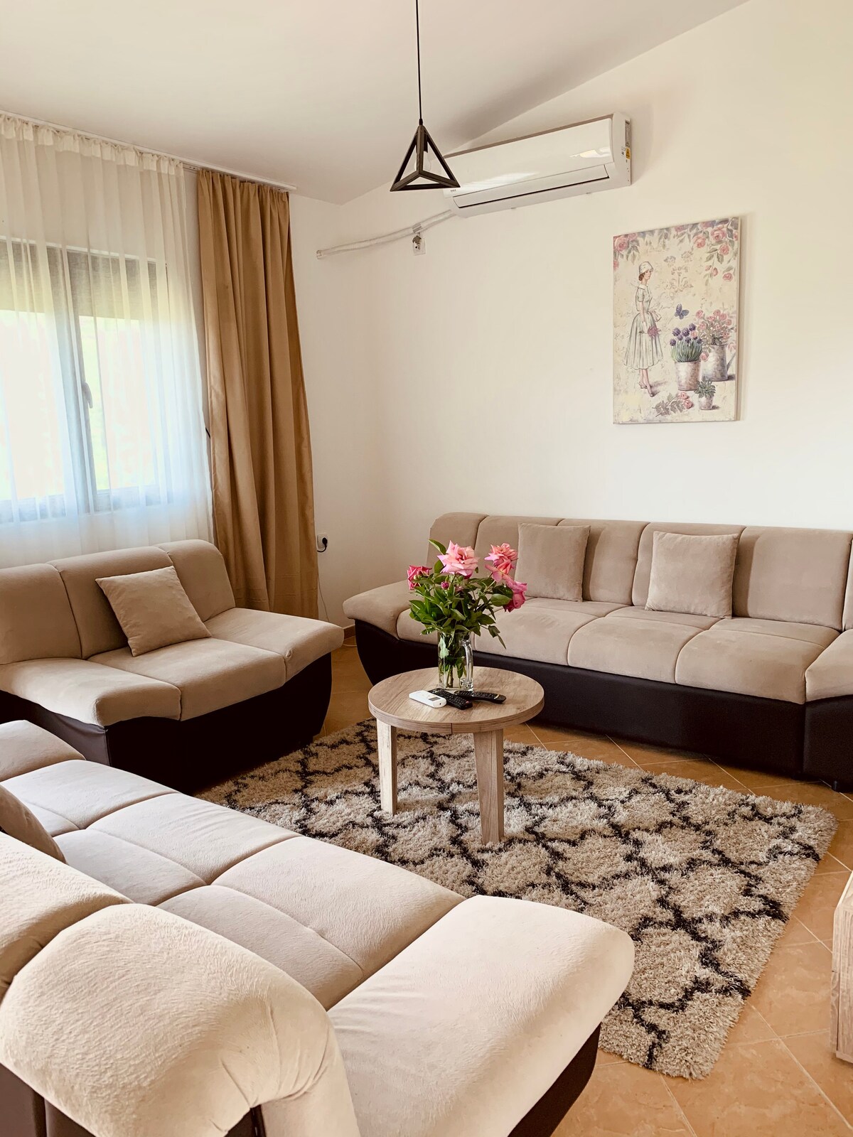 Discover this modern apartment with scenic views & earthy vibes in Shkodër's city center. Featuring a private balcony, high-speed Wi-Fi, air conditioning, smart TV, workspace, and a full kitchen, it’s perfect for families or friends seeking a central retreat. Steps from restaurants, nightlife, and local attractions, enjoy comfort, convenience, and unique style. Book now for a memorable stay in the heart of the city!