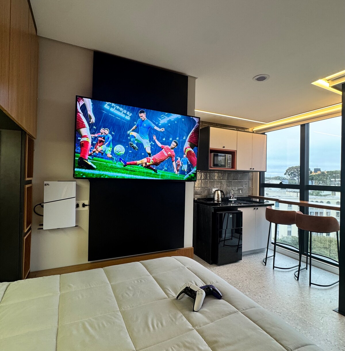 Cobertura duplex céu panorâmico | TV gigante + PS5