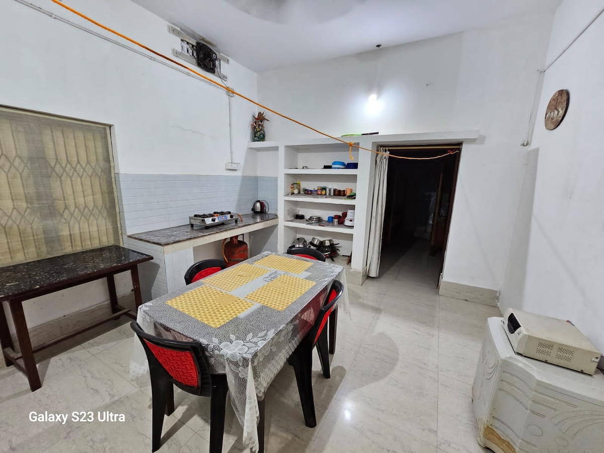 900 Sq. ft (2 x AC Rooms) Independent House in the Ground floor. A fully furnished 1-BHK property strategically poised between the Sea Beach and Puri Jagannath Temple. Amidst a serene environment, this place is crafted with minimalistic yet attractive home decor & offers all modern amenities & facilities for a nice & comfortable stay. * 1.5 kms to Beach & Temple * Caretaker available & Travel Assistance * Temple Assistance & Mahaprasad upon request. MOST WELCOME - A HOME away from HOME!