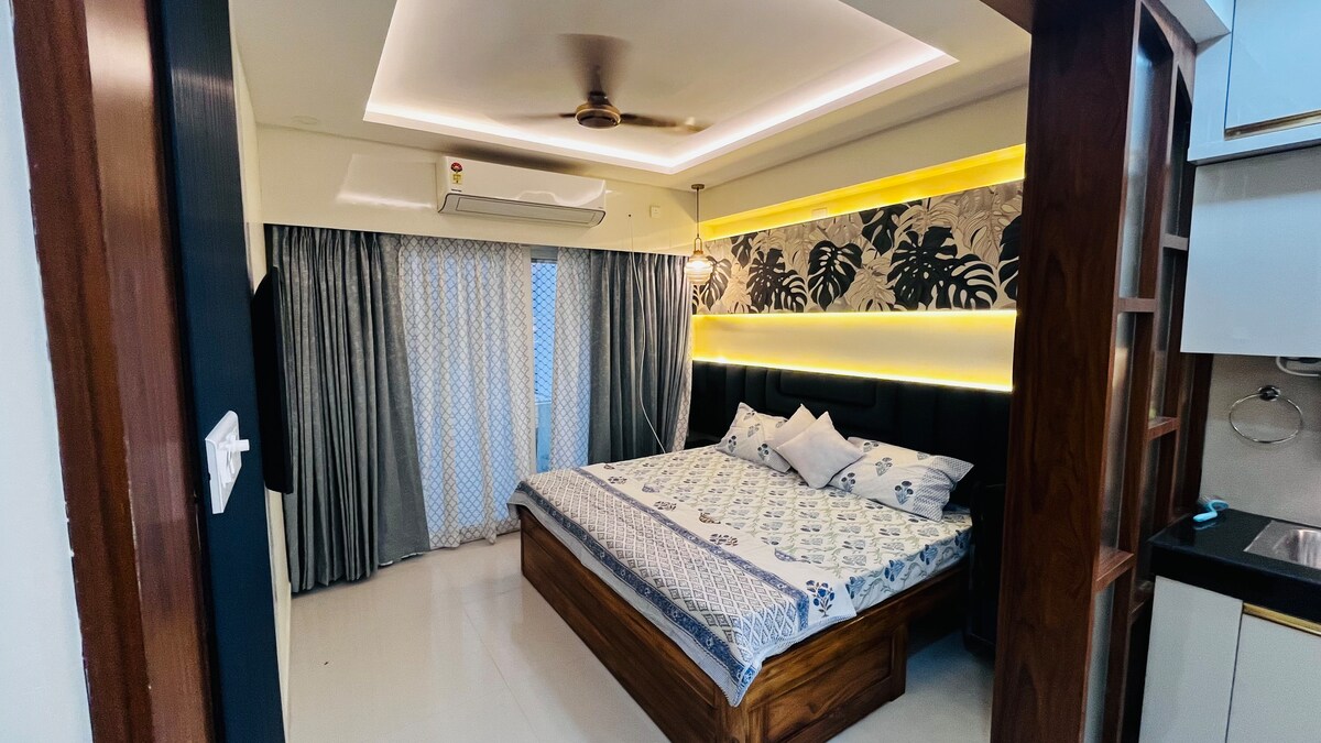 歡迎來到我們優雅的2 BHK公寓,非常適合家庭入住!在全空調房間(包括寬敞的客廳)享受兩張舒適的IKEA加大雙人床和一張雙人沙發床。開放式純素食廚房設備齊全,可滿足您的需求。 我們距離藍旗海灘僅600公尺,距離斯里賈甘納斯寺廟(Sri Jagannath Temple)1.5公里,為長期住宿提供理想的隱私和舒適。位於寬敞、維護良好的道路上,體驗放鬆與便利的完美結合!