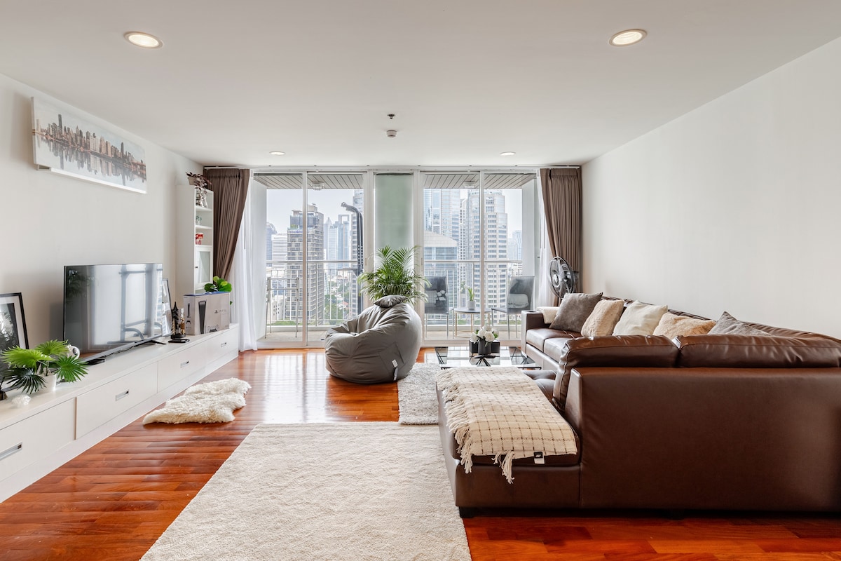 這間超寬敞的3臥室3浴室公寓坐落在曼谷市中心的高檔迷人的Langsuan街上,體驗舒適。 步行7分鐘即可抵達BTS空中列車CHITLOM站和著名的LUMPINI公園。 此單位擁有令人驚嘆的城市景觀和許多設備與服務 可舒適容納6位房客,加上大客廳的折疊單人牀可額外容納2位房客 非常適合尋找優質曼谷住宿的家庭、團體或商務旅客!
