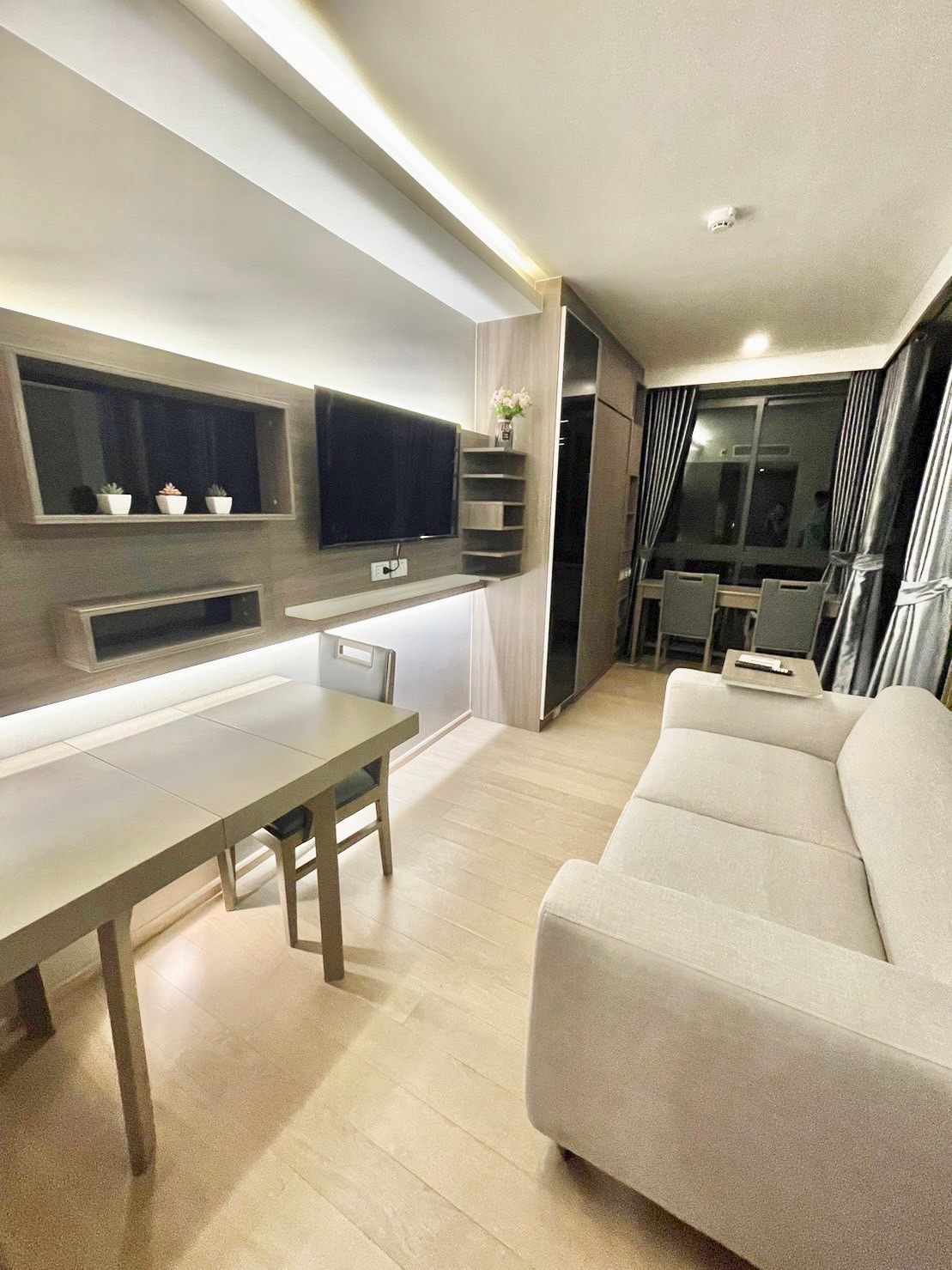 複式公寓,有1間臥室,家具和電器一應俱全,隨時可入住。高、開放和舒適的景觀,不受建築物阻擋。曼谷景觀,配備高速WiFi、Netflix電視 該項目是一棟混合用途建築,設有4星級酒店、健身室、泳池、桑拿、按摩和水療、酒店餐廳、國際餐廳、咖啡店、便利店、髮廊和洗衣店。 -電器:智能電視、洗衣機、冰箱、電爐、烹飪用具、微波爐、熱水壺、空氣淨化器、熱水器