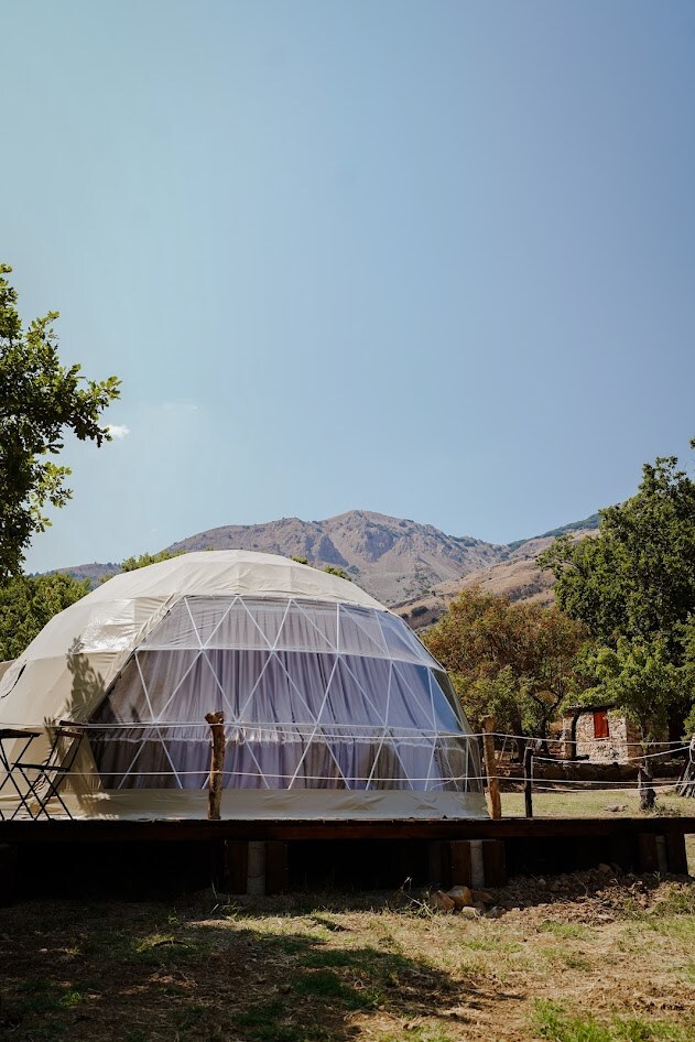 una cupola geodetica immersa nella natura incontaminata del parco delle Madonie. All'interno troverete un letto matrimoniale aria condizionata area relax interna ed esterna tavolino sulla terrazza privata bagno in camera con tutti i confort necessari.