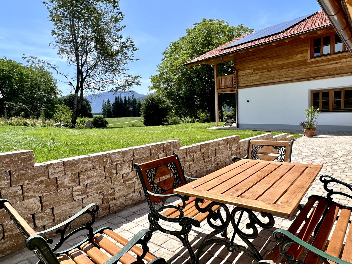 純粹的放鬆與平靜! 在這裡,您可以找到一切。 *淋浴間 * 2個夢幻露臺 * WEBER燒烤 *迷你吧 *電動自行車直接在屋內(選填) *全新設計的鄉村小屋,配備高檔設備 * 1個夢幻彈簧牀 * 2張沙發牀 房子的獨特位置讓您同時享受寧靜和行動。 *距離基姆湖( Lake Chiemsee )僅10分鐘路程 *距離薩爾斯堡僅20分鐘路程 *距離Ruhpolding僅10分鐘路程 *距離高速公路和火車僅5分鐘路程 *房子前面就有山地之旅