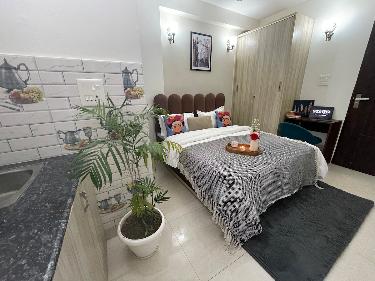 在這間位於市中心的豪華 1 臥室服務式公寓中放鬆身心,享受大陽臺。 位於 Sushant Lok-1 的古爾冈市中心 在有門禁的建築群內,提供 24 小時全天候保全和支援 千禧城地鐵站約5分鐘 機場約22分鐘 Cyberhub ~ 10 分鐘 高爾夫球場路約5分鐘 WiFi 150 Mbps、電梯、免費停車位在大樓內, 每日客房清潔服務、24 小時全天候電源備份 58 吋智慧電視、設備齊全的廚房、餐桌、專用工作站
