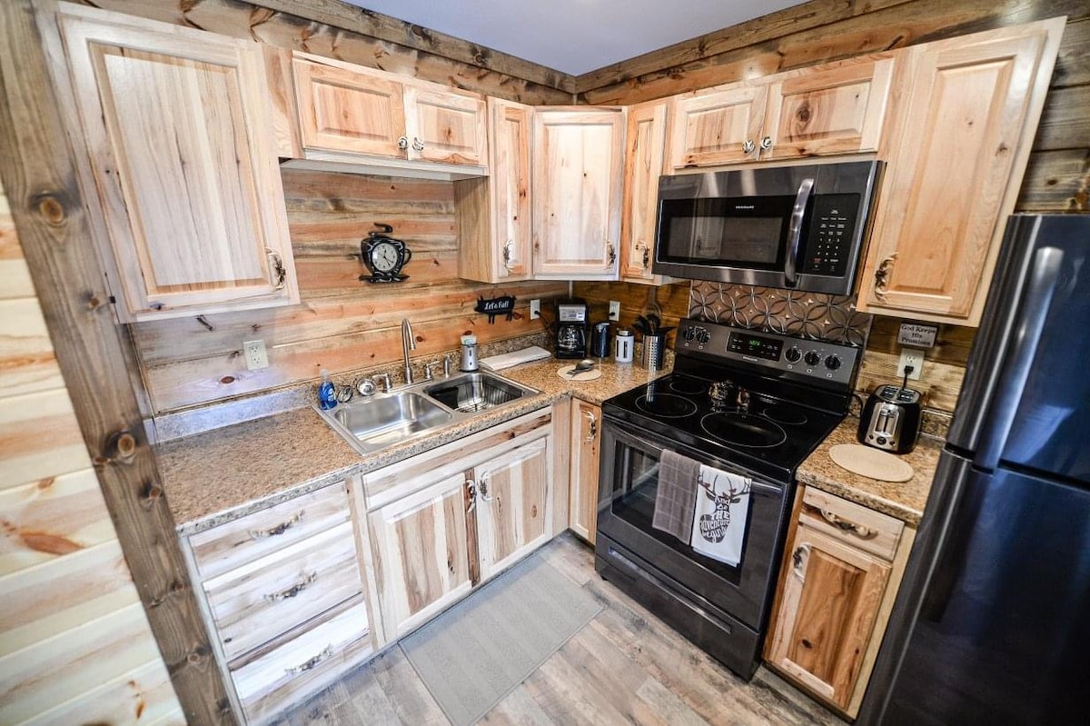 Country Charm是新建的小木屋,位於WV的Naugatuck。 這間小屋有2間臥室,配有雙人牀、完整浴室、完整廚房、客廳、洗衣機和烘乾機、2個更大的門廊、燃氣烤架、火坑、有線電視和WIFI。 我們距離Panther Mart (加油站和熱門酒吧) 1英裏 距離HMT不到12英裏。 靠近幾條非公路步道,以及WV和KY的公共狩獵地。