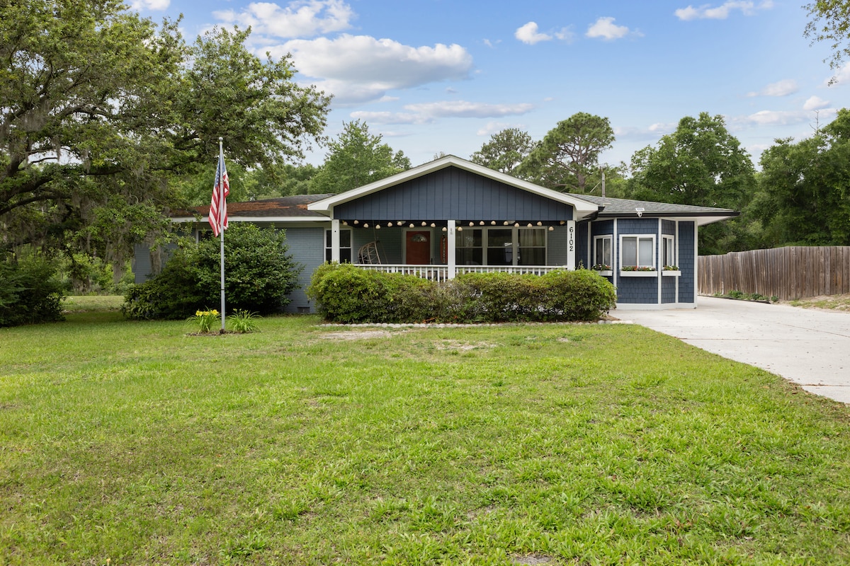 這座1930年代的農舍距離UNCW的美麗校園和威爾明頓市中心僅幾步之遙,經過精心修復,準備好迎接您的海岸冒險! 此空間設有路邊停車位、全屋硬木地板、樓上有兩間舒適的臥室和樓下寬敞的主人房。開車前往萊特斯維爾海灘(Wrightsville beach)僅8分鐘,開車前往威爾明頓市中心(Downtown Wilmington)僅8分鐘。步行即可抵達當地的餐廳、公園和Trader Joe 's。在房客入住之間徹底清潔和消毒!