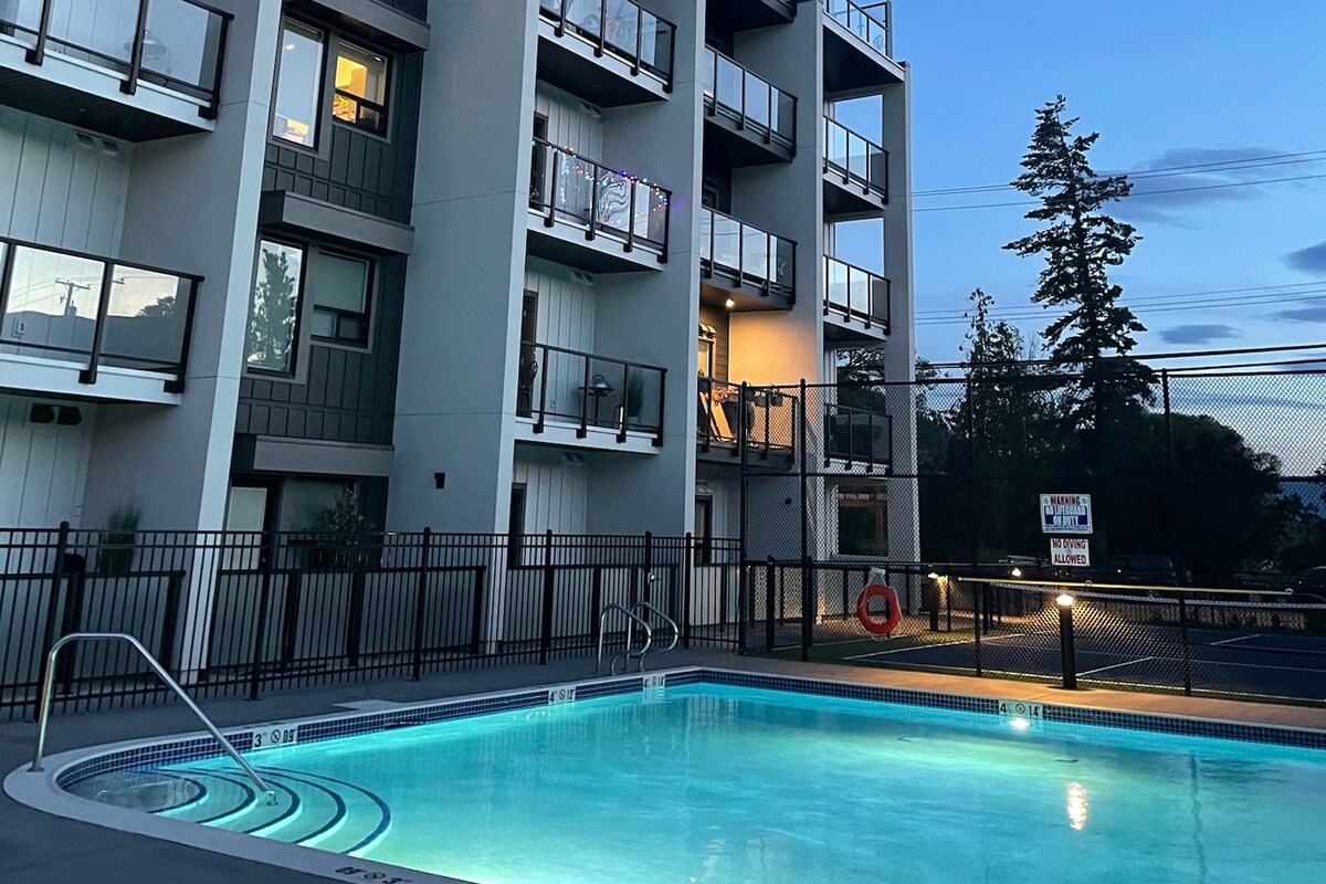 歡迎來到 Vita Retreat。 歐肯納根湖的全新海濱度假勝地!我們的智慧套房非常適合情侶或小家庭入住,配有加大雙人床和拉出式雙人沙發。享受室外溫水泳池、室內健身房、免費電動車充電器和專用停車位。套房內有設備齊全的廚房、洗衣機/烘衣機,還有空調、Wi-Fi 和可烤肉的露台。 探索以海灘、公園、自行車道和迷人景色而聞名的奧卡諾根蘭丁。立即預訂,享受 Vita Retreat 的舒適與便利!