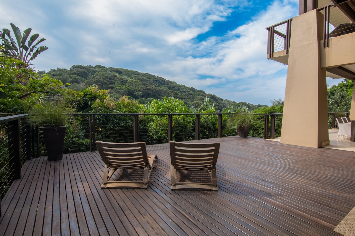 「Hideaway Villa」別墅,具有寧靜的「小屋」類型感覺,完美地坐落在巴利托(Ballito)的 Zimbali 海岸度假村的原始海灘沙丘森林中。 房源僻靜的位置距離海灘和泳池谷僅幾百公尺,提供極佳的隱私,鳥類和動物生活令人驚嘆,附近湖泊的常住魚鷹是一個特別獨特的體驗。 為 Eskom Load Shedding 安裝了自動 5.5kw 備用電池逆變器系統。