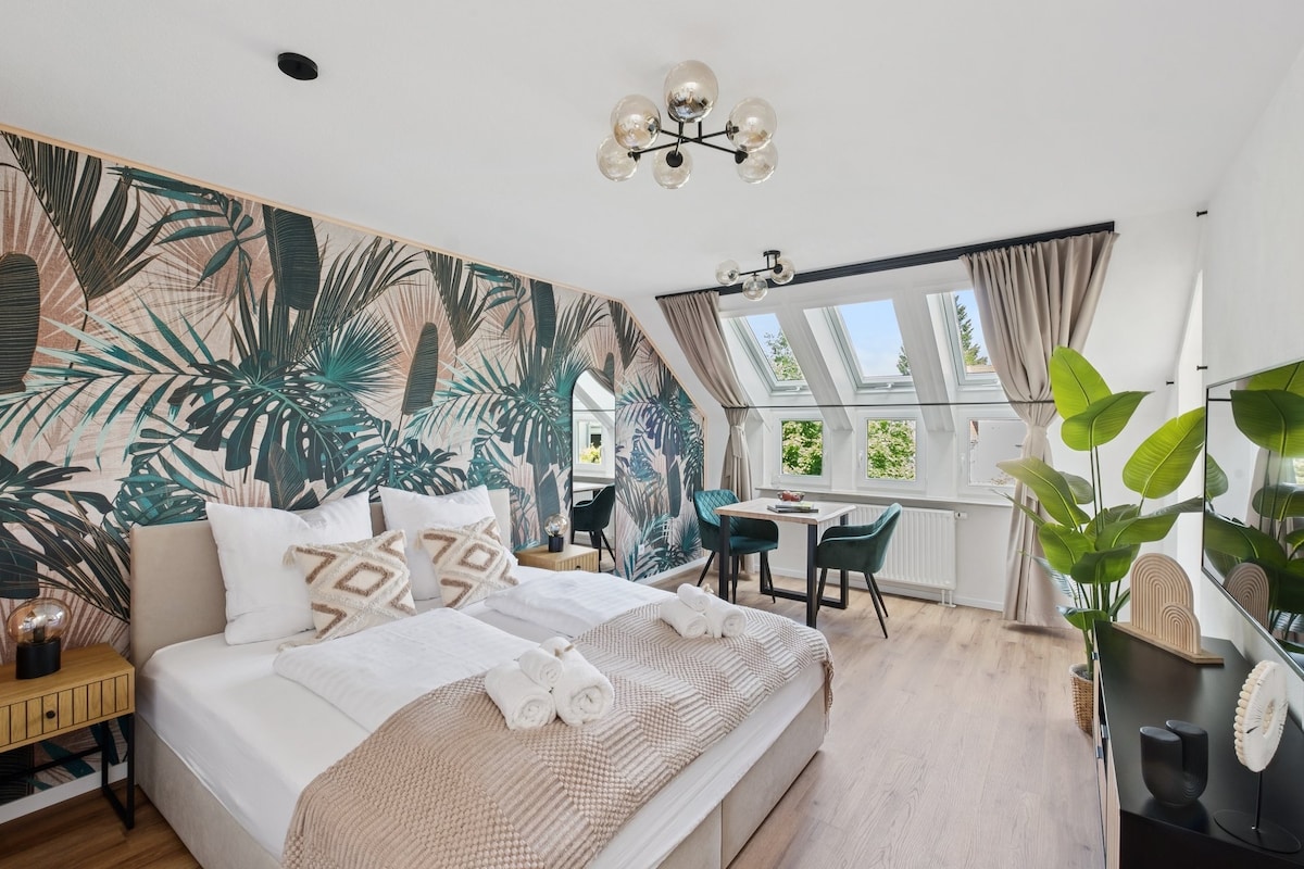 精心翻新的舊公寓。 天窗讓大量光線照進室內,而室內裝飾則色彩鮮豔。 你可以在書桌前順利工作。 您可以在舒適的扶手椅上放鬆身心。 梳妝臺有存放個人物品的空間。 如有需要,一張兒童牀( Hauck旅行嬰兒牀長120公分)正等著您。 廚房寬敞且設備齊全。 公寓兩側有傾斜的牆壁。 這樣的床鋪雖然舒適,但對於身材高大的旅人來說可能會不太方便。