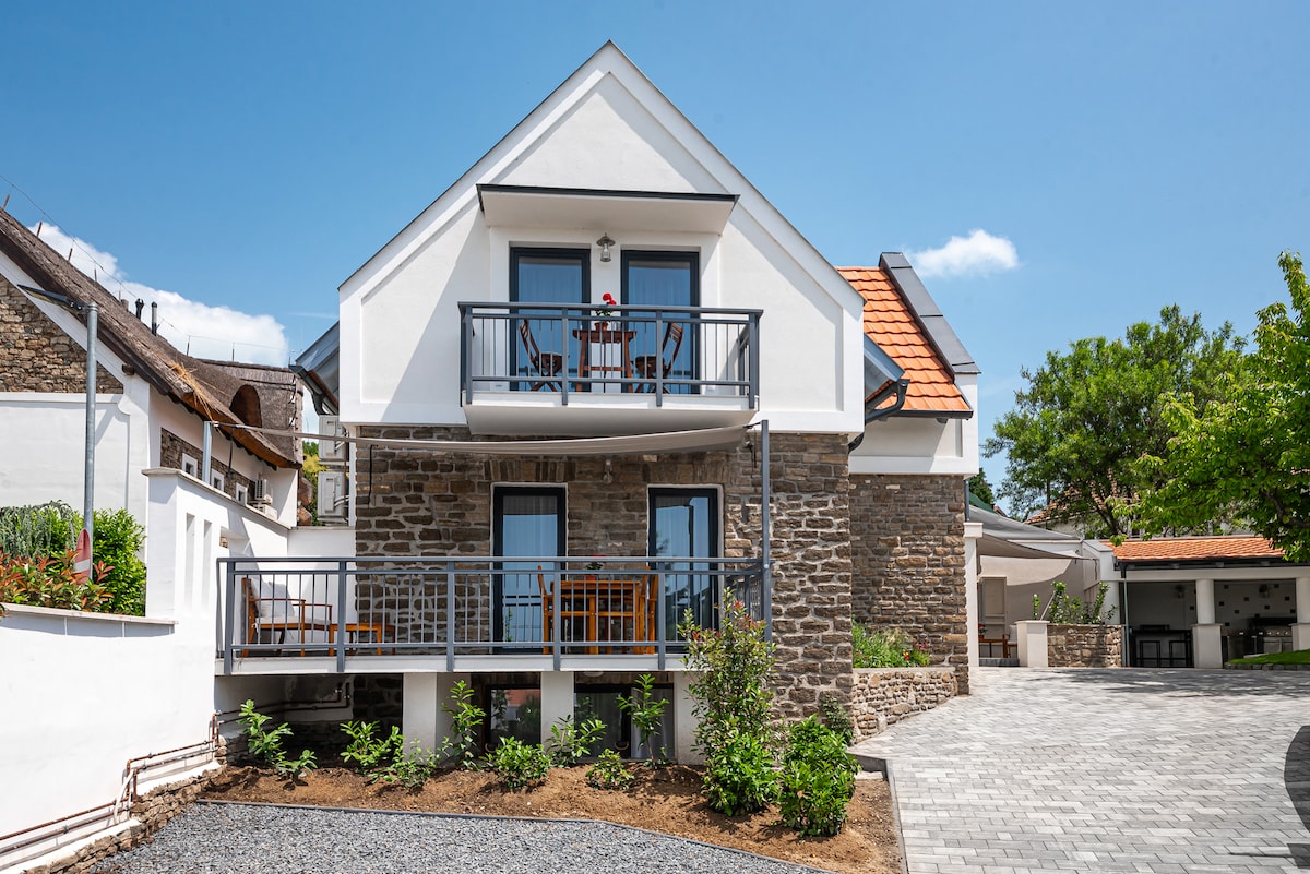 我們的客用住房提供舒適的氛圍,有8間客房,可容納16位成人和6位兒童。 每個房間都有自己的獨立浴室。 獨立屋設有寬敞、設備齊全的廚房和共用的飯廳,以及可俯瞰巴拉頓湖的全景露台。 花園內設有烤肉、烹飪和用餐設施。 我們的按摩浴池適合8人以上使用,全年開放。 海灘步行5分鐘即可抵達,市中心距離酒店3公里。