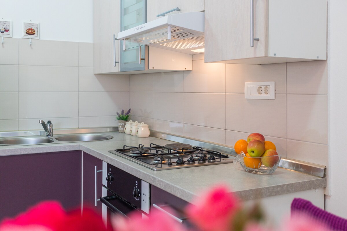 Welcome to our cozy one-bedroom apartment, nestled on the ground floor of a charming family house: * Bedroom: king-size bed, ensuring a restful night's sleep * Living Room: comfortable space for relaxation and sleep, with a pull-out sofa bed accommodating two sleepers; NETFLIX * Kitchen: fully equipped with a microwave, fridge, freezer, and dishwasher * Bathroom: a washing machine for your convenience Come and experience the comfort, relaxation, and family-friendly atmosphere of our apartment.