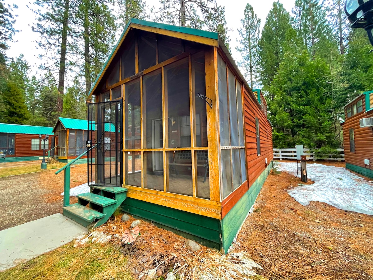 這是一個漂亮的小木屋,坐落在鬆樹下。 靠近沙斯塔山( Mt. Shasta )和滑雪、釣魚和徒步旅行區以及歷史悠久的Dunsmuir鎮。 廚房配有全尺寸冰箱,您可以入住或在城裡享用美味佳餚。 距離沙斯塔山( Mt. Shasta )約10分鐘路程,有很棒的商店和餐廳可供探索。 小木屋位於Cedar Pines RV Resort ,因此有足夠的拖車停車位。 公園周圍設有閉路電視,但小屋內沒有閉路電視