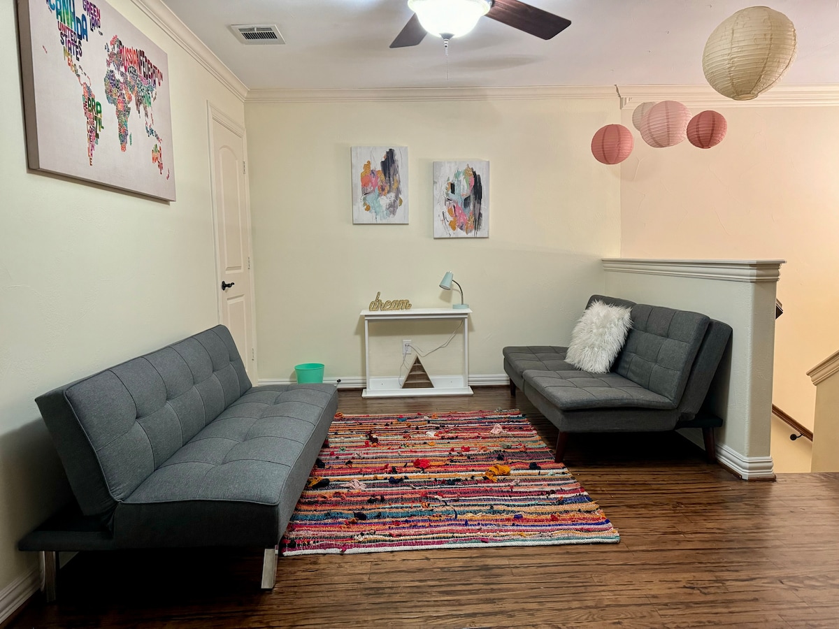 ✨Cozy Getaway! Comfortable, decorated space. Thoughtful touches for a relaxing stay Prime Location 📍 In Downtown Arlington, central to Dallas/Fort Worth Walk to Entertainment 🏟️ Walk to: AT&T Stadium, Globe Life Field, Texas Live! Minutes from Fun 🎢 Minutes from: Six Flags, Hurricane Harbor, Epic Central Local Flavors 🍔☕ Surrounded by awesome local spots: breweries, coffee, BBQ, arcades Perfect for Any Occasion 🎉 Ideal for game day/weekend escape in Arlington's entertainment district!