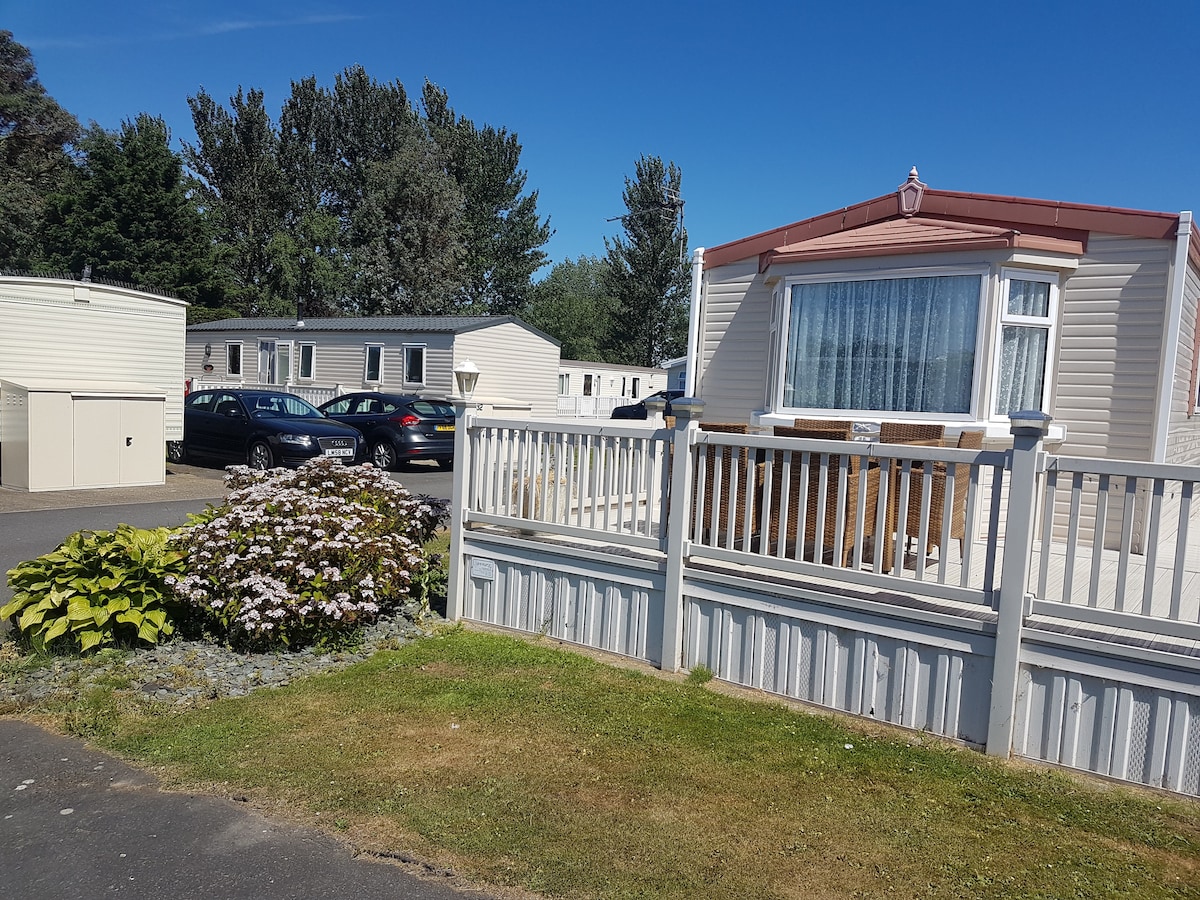 WE HAVE 2 CHALETS NEXT TO EACH OTHER SEE OTHER LISTING Gsituated on eastfields Park Chapel St leonards Relax with the whole family at this peaceful place to stay. 200 yards to pet friendly beach. Fishing lake on site. North sea observatory across road. Shop outside entrance. Trafalga pub outside entrance with beautiful meals, bingo, 10 mins walk to pubs, shops, amusements. Buses every 15 mins to Ingoldmells and skegness. Beds all made up for your arrival Tv in living room and double bedroom.