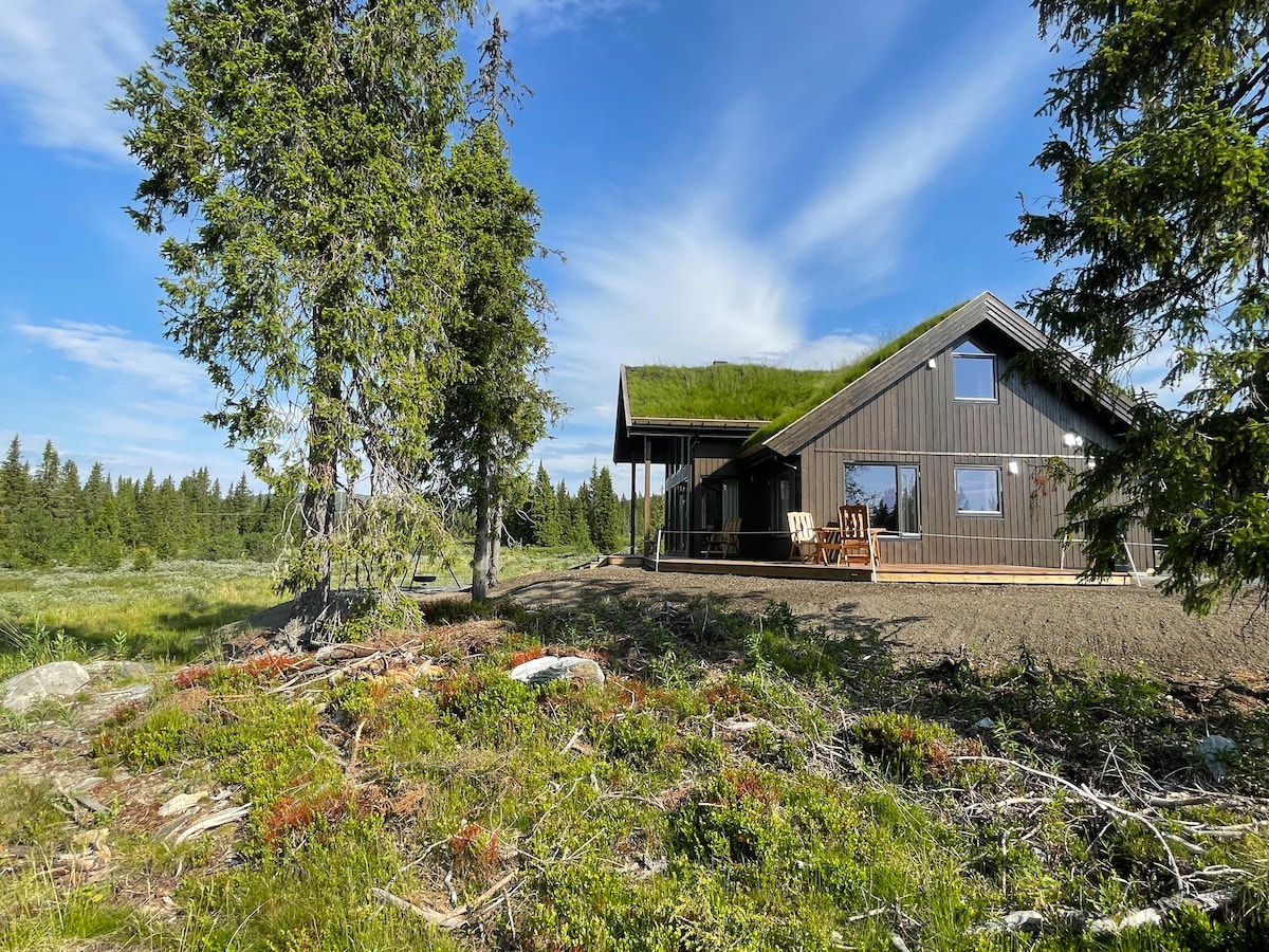 現代小木屋,位於Skeikampen,位置安靜且位於中心。 小木屋建於2021年,我們很樂意與您分享。它被開闊的土地和森林包圍,位於小屋區域的角落。 從陽臺上,您可以聽到Skeiselva河的聲音,在夏天,我們建議您在那裡洗澡。 在冬季,令人印象深刻的XC滑雪道網絡僅幾百公尺遠,您可以使用高山滑雪板從高山中心滑回小木屋。