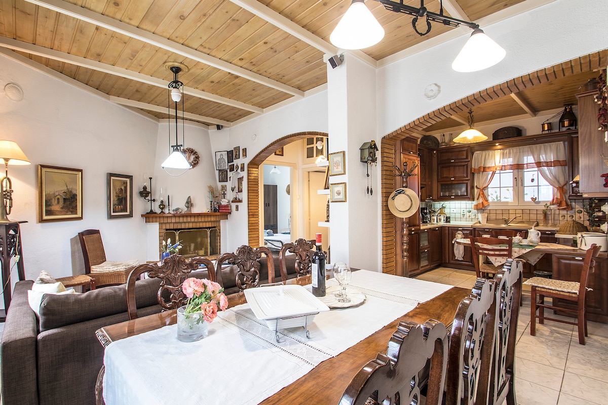 Welcome to the cosmopolitan island of Skiathos! The Bohemian Townhouse "Upper floor", is a recently renovated flat, and is located close to the central church, next to a traditional tavern with live music. It is only a 4-minute walk to the port area and 7 minutes away from the public parking lot of Acropolis. The upper floor can accommodate up to 4 people. It features a double bed and a sofa-bed and a fully equipped kitchen. There is a small balcony with chairs and a table too.