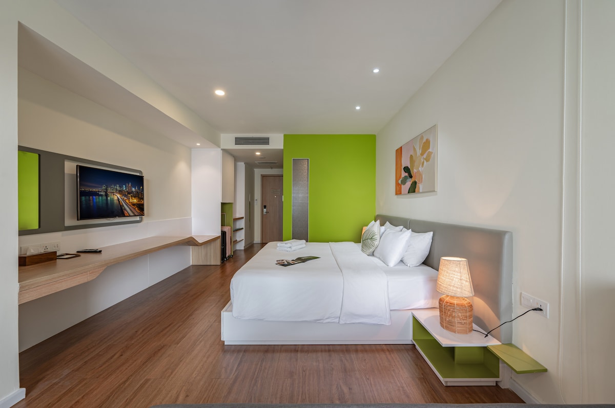 位于芽庄市中心的全景工作室公寓,完美融合了奢华与舒适,让您尽享这座海滨城市的美景与活力氛围。您可以使用高端健身设施,保持日常健身习惯,还可以在一天的探索之后,在清爽的泳池中放松身心。最棒的是,公寓距离美丽的芽庄海滩仅几分钟的步行路程,让您轻松享受日出/日落、沙滩和大海的乐趣!