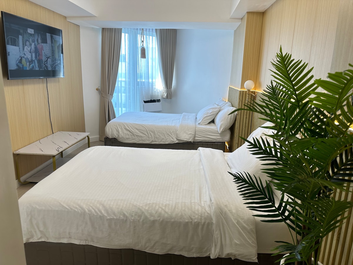 這間位於市中心的房源,讓您享受時尚舒適的家庭氛圍,並享受海灘氛圍。 在Azure North的波浪泳池和人工海灘中放鬆身心。 ZOZI PAD提供廚房工具,讓您可以自行準備和烹飪美食。 價🌿 格僅適用於2人 🔹 P300-額外人員 5歲及以下兒🔹童免費 最多🌿4 名成人 🌿P200/小時-提前入住/延遲退房(視情況而定)