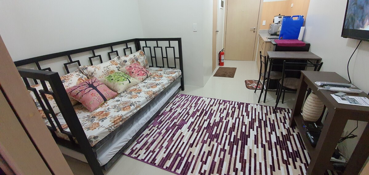 南部地鐵站附近的智慧現代概念 1 房單位。 高級家具 SM Field Residences ✔️自助入住 ✔️ 自動門鎖(我們會提供個人化密碼) ✔️20mbps WiFi (停電時會提供攜帶式 WiFi ) ✔️55 吋 FHD Android 電視 ✔️沙發床 ✔️ 多個儲存區域 ✔️熱水器 ✔️洗衣機 ✔️每晚 250 泊車位,視可訂狀態而定