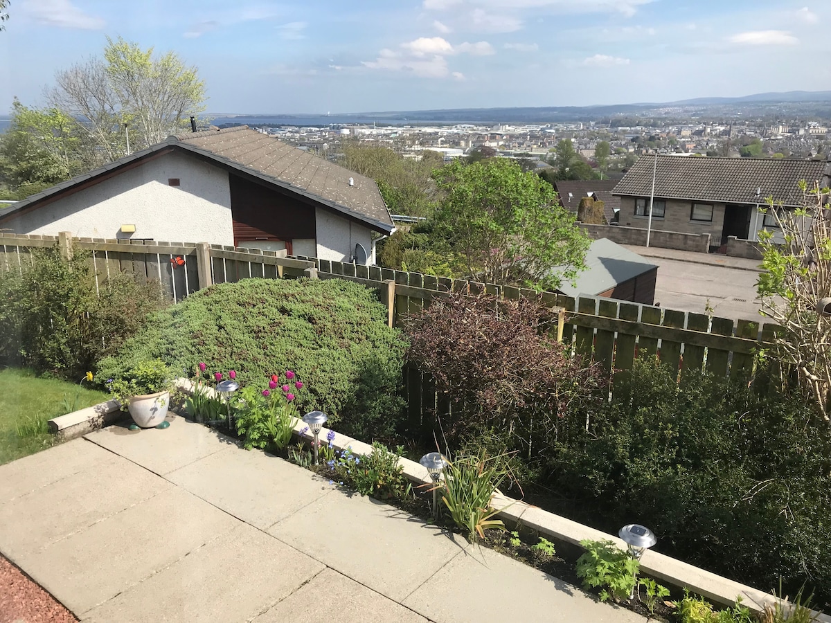 Delightful holiday home in Inverness overlooking the city with distant views to the sea and hills. This one bedroom property is an ideal choice to base yourself while exploring Inverness and the Highlands. Enjoy the views from the bright and airy lounge which has comfortable modern furnishings and sit out in the private garden in a peaceful setting with a view of the city and the Kessock Bridge. Your car will be in the private driveway off the road near your door.