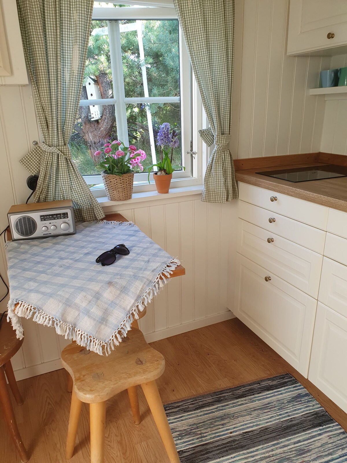 獨立小屋,包括客廳、廚房、臥室和 3 張雙層床。浴室和淋浴間。小屋配有可供4人使用的瓷器。冰箱和冷凍層。電磁爐、烤箱、風扇、微波爐、咖啡機等。獨立入口。 空氣熱泵,可冷卻。露台由木製平台和戶外家具組成,可容納4人。小屋附設私人停車位。 小屋位於 Mellbystrand 的中心,步行即可抵達美麗的海灘、便利商店、餐廳、大型購物中心和健身中心