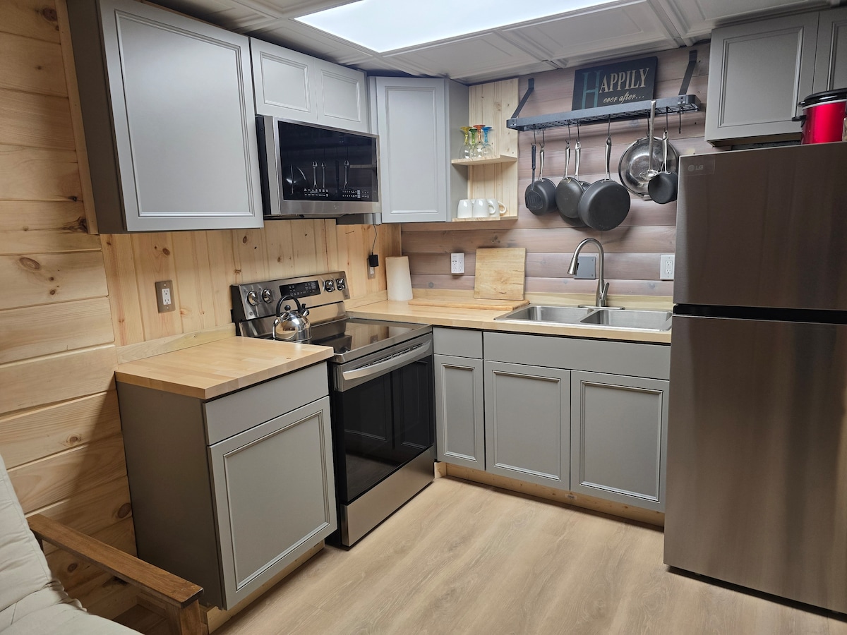 來享受在全新裝修的移動房屋中放鬆身心的住宿。 這間舒適的度假屋有齊一切所需,讓大家盡情享受旅程。 •設備齊全的廚房•全套浴室•洗衣機和烘乾機•書桌/工作空間•兩間臥室,每間均配有標準雙人床墊•可提供額外的折疊雙人床墊供地面使用 •室外火坑,提供木材。 提供咖啡、茶、熱巧克力、零食、洗漱用品、洗衣液、紙巾。 •禁止吸煙(只能在室外) •禁止舉行派對 不允許寵物