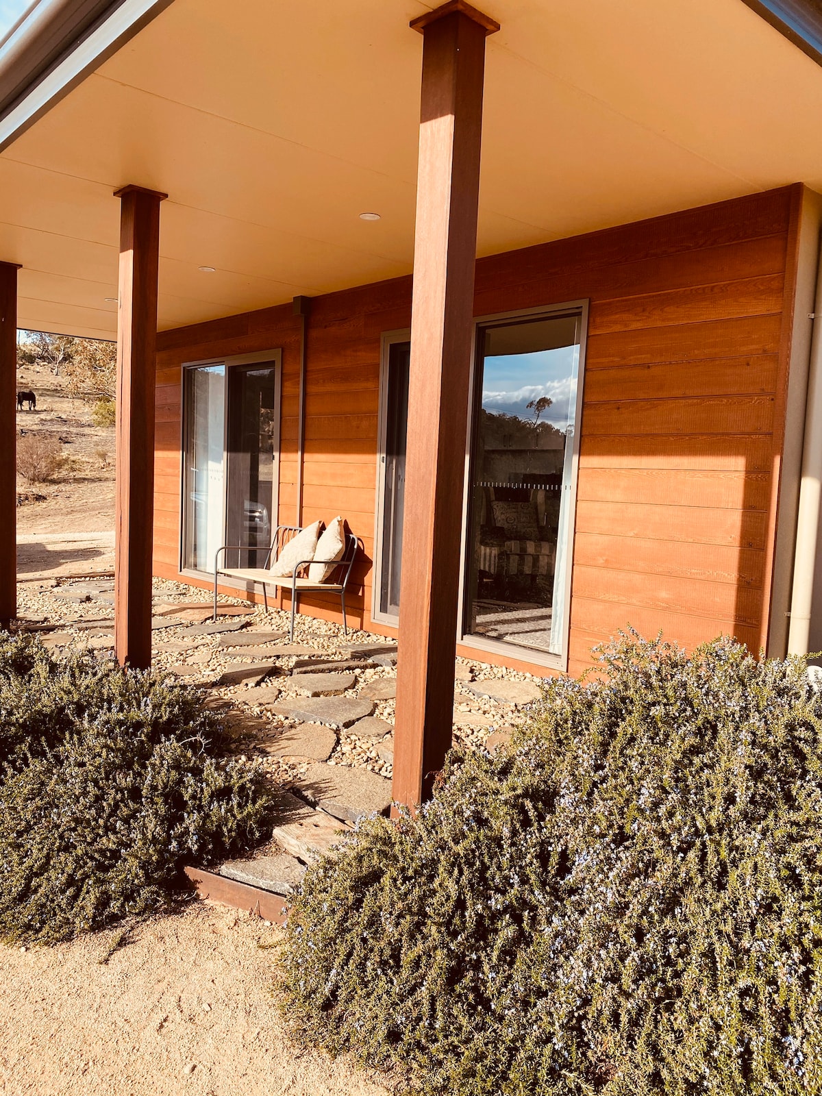 現代微型住宅,有2間閣樓臥室,位於鄉村物業,距離Jindabyne 15-20分鐘路程,距離雪地40公裏,位於1公裏土路盡頭的安靜位置。 請注意,此房源沒有WiFi。 請注意,我們住在房源內,房源中的一張相片顯示了距離。 如果您想預訂寵物,您需要先透過諮詢與我們聯絡。 此房源不適合嬰幼兒入住。