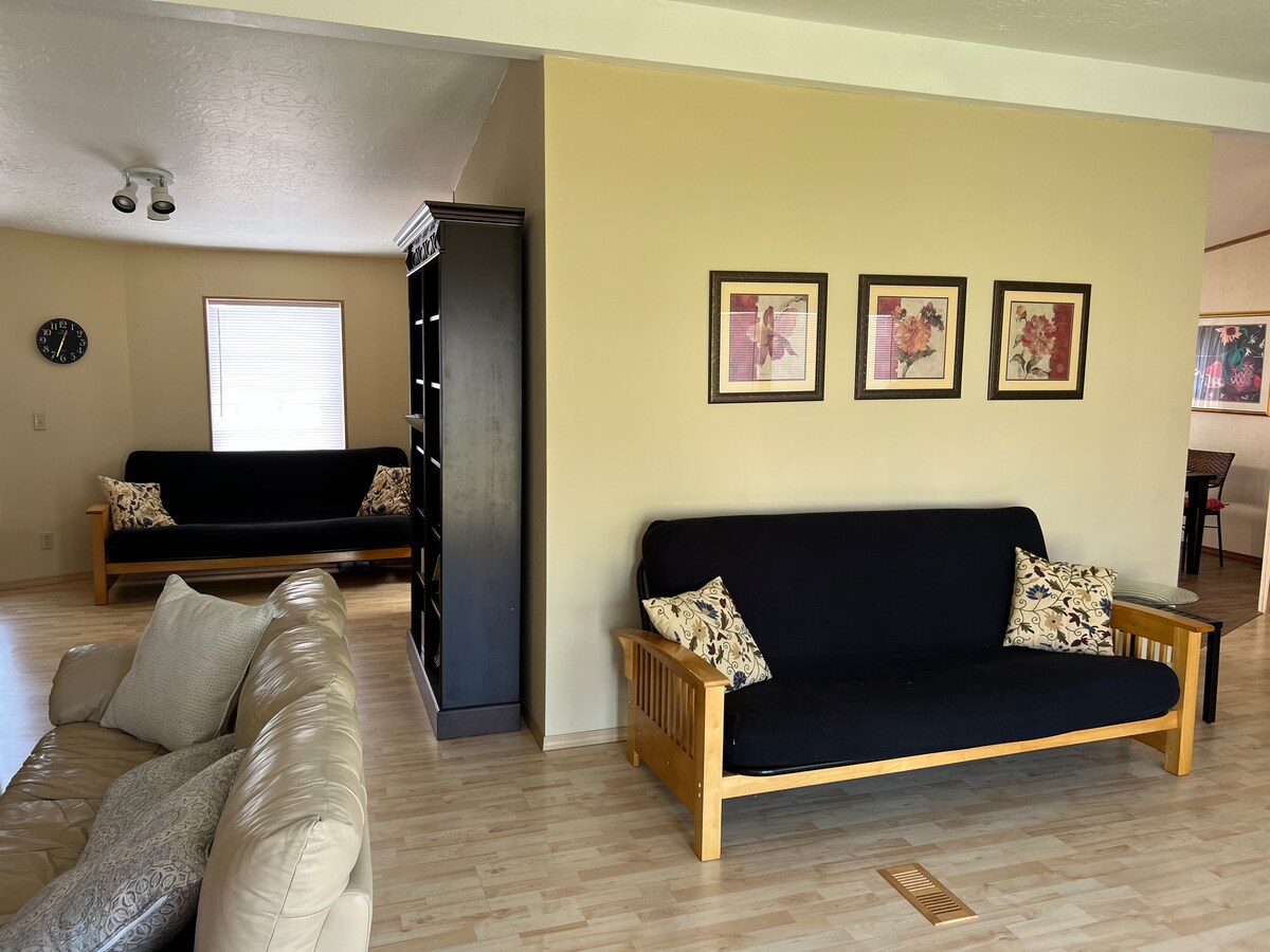 Expansive single story 5 star accommodations minutes from Costco, Fred Myers and Hydro Park. Four bedrooms, 3.5 baths with 2 game rooms, there is plenty of room to hang together or spread out and get a little space. Dual main suites make this home great for groups and with sound proofing in each room, everyone gets a little privacy. End the day with our 6 head spa shower. Game room with wet bar more games set up in the heated garage. Breakfast is provided. No additional cleaning/pet fees.