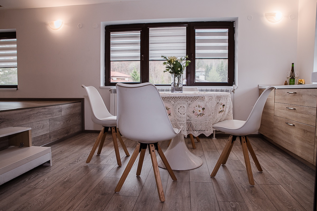 在「Borisova gradina」公園和鷹橋附近的這個51平方公尺的明亮閣樓中體驗現代舒適。享受充滿活力的裝飾、木質裝飾和兩張多功能床(90x200 公分)。地理位置優越,距離索菲亞的主要景點僅幾步之遙,輕鬆前往公共交通工具。 - 可旋轉的 Android 電視,可收看 Netflix - 帶 HEPA 過濾器的空氣清淨機 -設備齊全的廚房 -高速 Wi-Fi (91 Mbps) -全新、維護良好的建築 立即預訂,體驗索菲亞的精華!