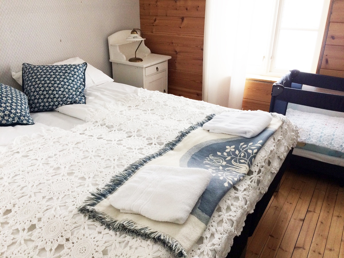 簡單標準的迷人攤位。 在這裡,您可以在美麗的大自然和綠色環境中放鬆身心。 牆上有很多歷史,歷史悠久的街道 Tomas教堂就在隔壁。 臥室很簡單,但很舒適。 有一個共用淋浴間和一個很好的烘乾室。 還有一個迷人的外屋! 這裡是設置體驗和大自然的人,比舒適性更高的地方。 請記住,您必須自備牀上用品/睡袋/牀單袋。 也可以租用牀單,價格為150挪威克朗。
