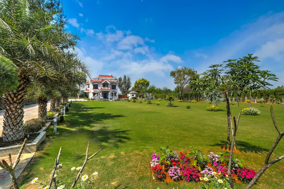 靠近阿拉瓦利山的私人豪華度假勝地,靠近城市但遠離污染,空氣更清新,空氣質素指數更低。 在鬱鬱蔥蔥的草坪上放鬆身心、在吊床上搖擺、在泳池中漂浮,並在清晨醒來欣賞寧靜的景色。 在綠色屋頂涼亭下,你可以盡情享受草坪遊戲、星光燒烤和優雅的夜晚,是戶外用餐、聆聽音樂和慶祝活動的理想之選。 適合親朋好友一同入住的寧靜度假勝地,讓你留下難忘的回憶。