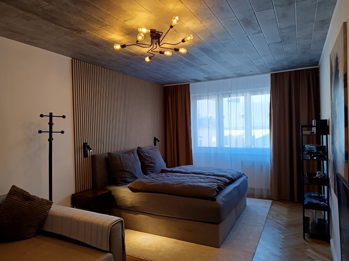 Sunny attic apartment in a quiet part of the city near the center and the forest. The bedroom offers a double bed with a size of 2x2m. There is a sofa in the living room, which can be expanded to a size of 190x150 cm and allows two more people to sleep. In the living room there is a kitchen with stove, sink, refrigerator, dishes. The apartment has wifi and two televisions. The bathroom has a small wooden sauna for max. 2 people. The toilet is separate. You are in the center in 5 minutes on foot.