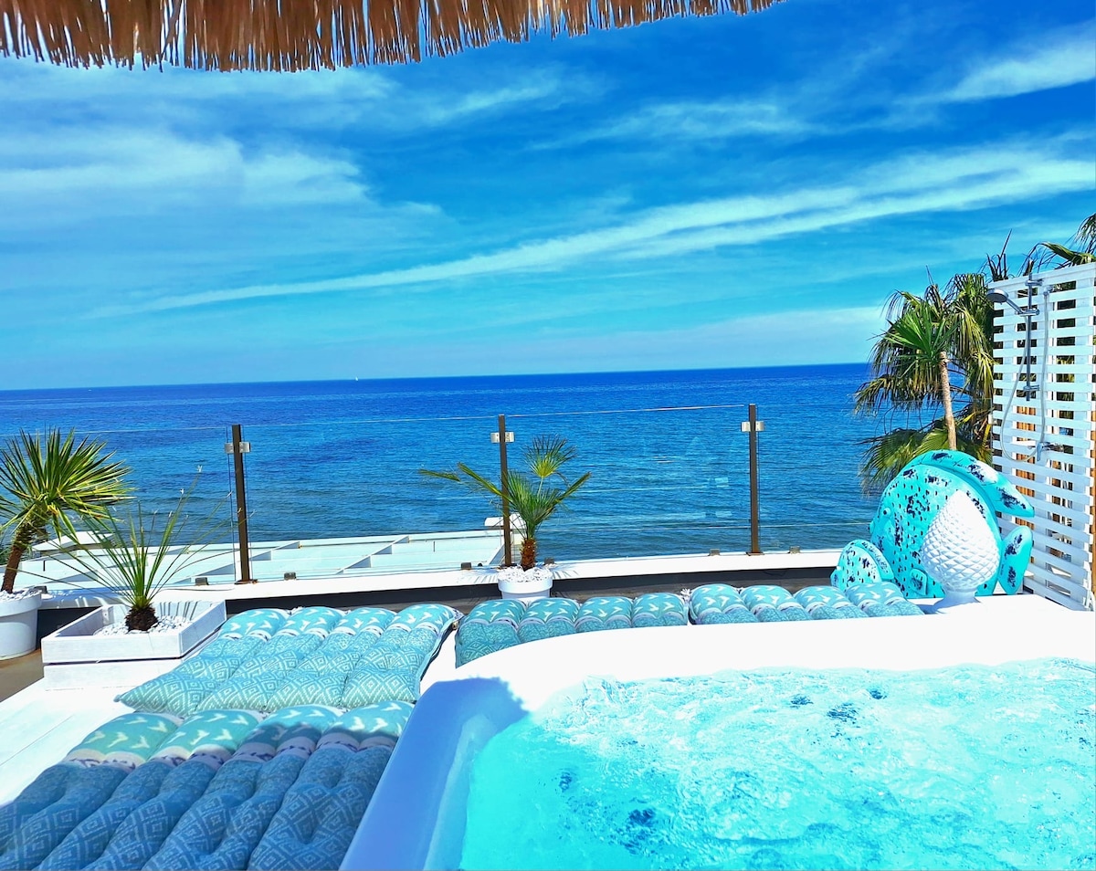 🌊 海濱小型套房 探索您的地中海綠洲! 設有私人露臺和俯瞰大海的清爽迷你泳池(不加熱) ,非常適合在您面前欣賞海浪舞蹈的同時放鬆身心。 包括: •帶迷你泳池的露臺 •小廚房 •直達海灘 •沙灘椅和雨傘 •冷氣 •迷你冰箱 額外魔術: •機場接送 •遊船之旅 海景與奢華相遇的地方... ✨