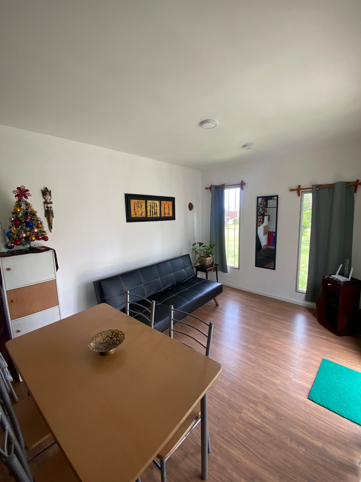 美麗的新房子,配有雙人床的臥室、與餐廳相連的廚房和警報器。兩間房間均配有空調和電視。 電動廚房和爐子。 全套衛浴,配有衛生淋浴。 1200 公尺的土地,有不同的空間:可以懸掛兩個吊床的地方、可以生火的空間、可以圍坐的木頭或只是坐在樹下的椅子上。 配有簡單的移動烤架。 距離巴士站 2 個街區。 不接受寵物入住。