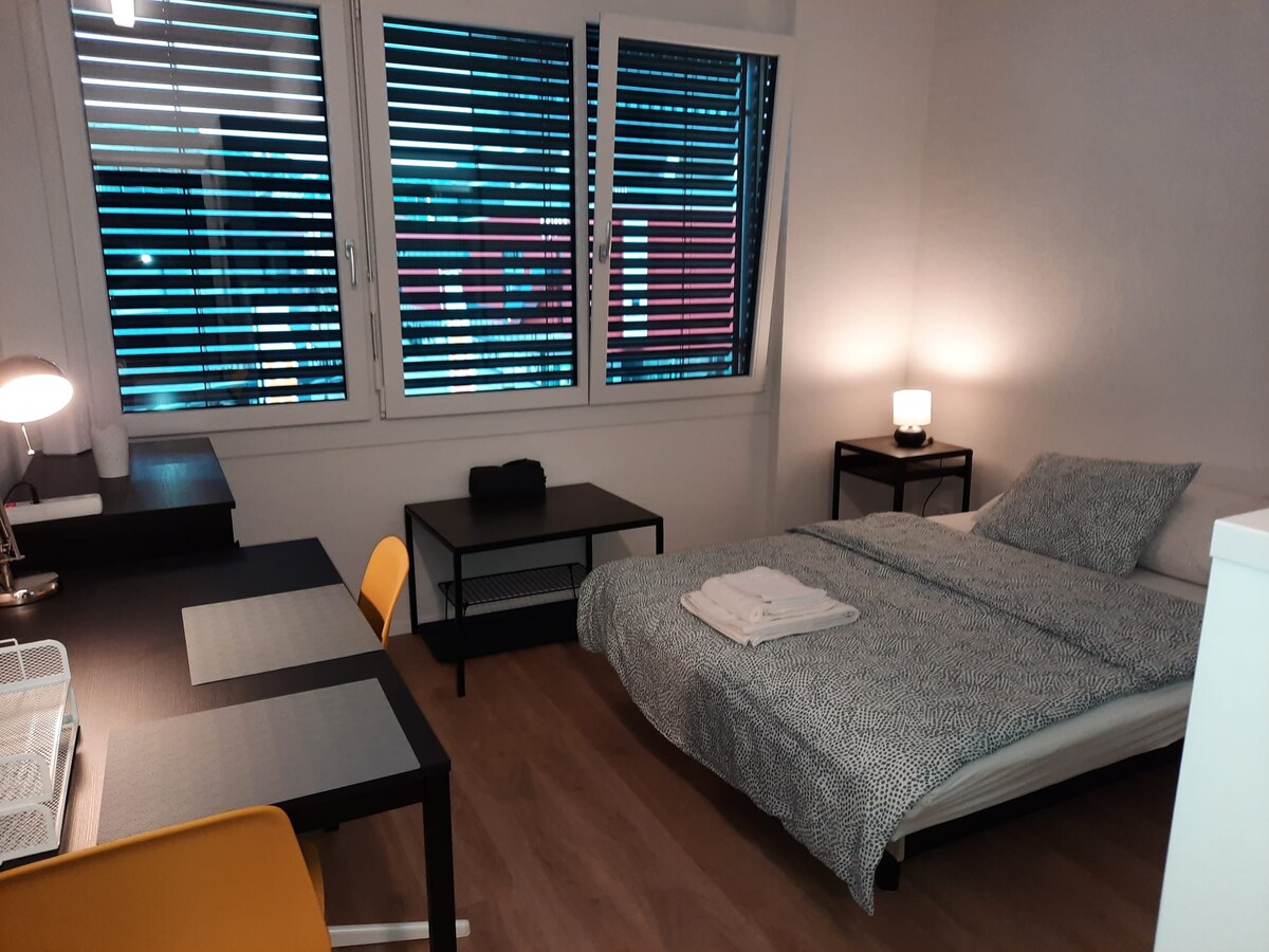 新翻修的 2.5 間臥室公寓,坐落在瑞士中心地帶的夢幻公園內!客廳配有新廚房、餐廳和工作區,配有舒適的沙發床和現代電視,讓您在晚上放鬆身心。40年代風格的優雅浴室,配有大淋浴間。公寓有私人入口,需鑰匙密碼。 免費停車位,配有電動車充電站。 地理位置不僅安靜,而且非常中心。這個特殊的住所有著獨特的風格。