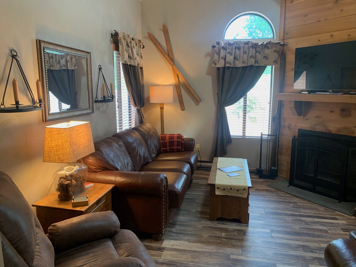 在山區享受春夏。舒適的2床/2浴室公寓,配有1張加大雙人床、1張雙人床、1張雙人床/單人床和1張雙人沙發床。社區泳池( 5/24開放)、匹克球、網球場和籃球場以及付費度假村活動。前往附近的健行步道、公園和水道。將您的公路/山地自行車、皮艇/槳板存放在車庫中。需要在山上工作嗎?我們的550 Mbps連線沒有問題。公寓最多可供7位房客入住,但最舒適的是4-5位房客。