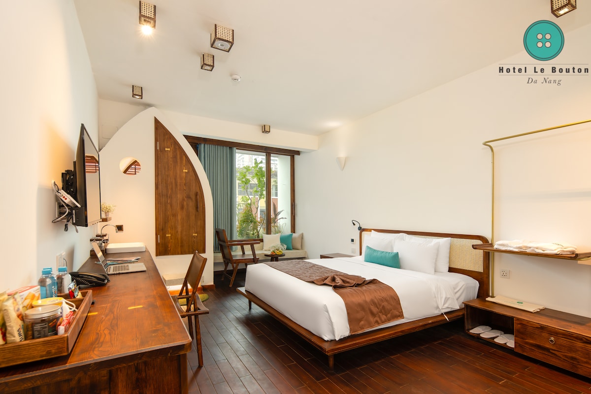 Bright studio with a private balcony - Perfect for couples seeking comfort and simplicity. A welcoming studio featuring warm lighting, modern interiors, and a private balcony to enjoy fresh air. Ideal for guests who want a cozy, practical space near My Khe Beach. Nestled just a 4‑minute walk from My Khe Beach, Mixay Boutique offers a peaceful blend of modern comfort and natural simplicity. Enjoy bright studios, warm wooden touches, and relaxing garden corners throughout the property.