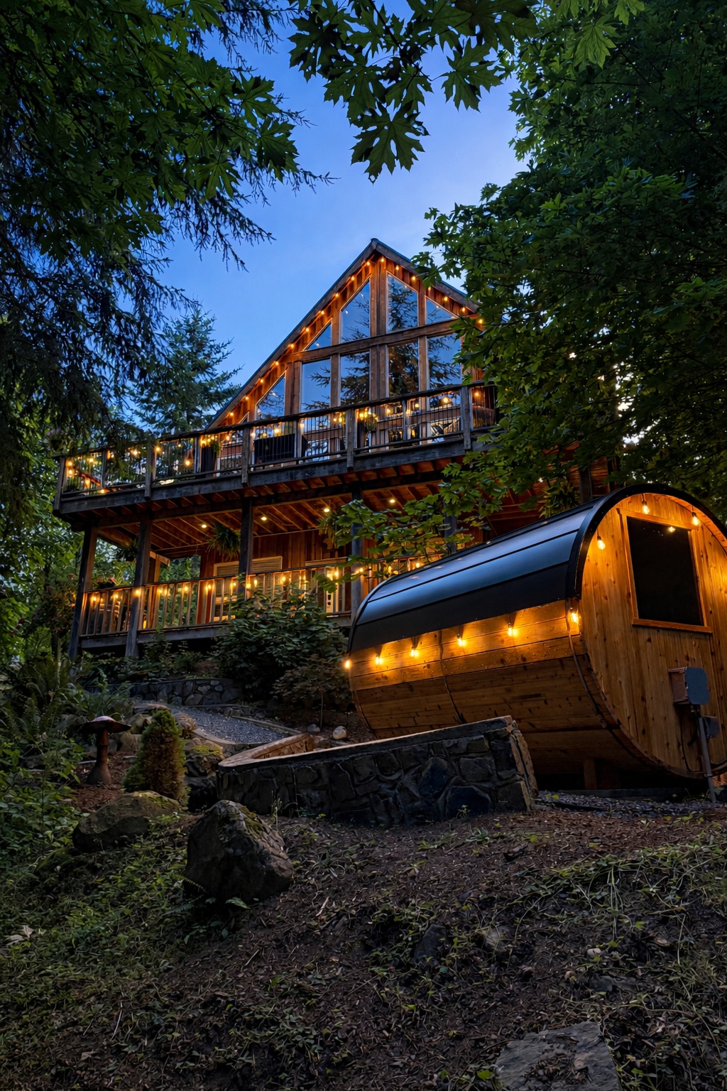 山頂隱藏處,配有桶狀桑拿!