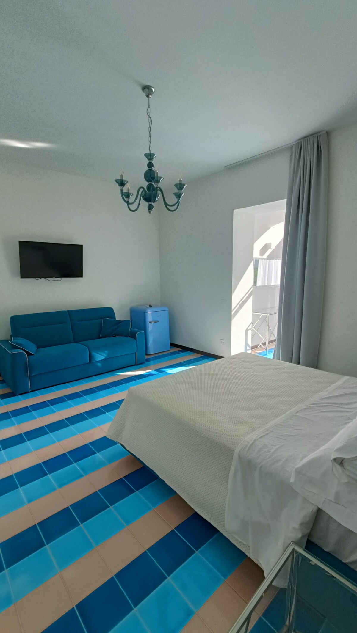 Milky Suite Carla Vittoria is the biggest room of the residence. It features a queen size bed and a private bathroom for comfort and privacy. The suite includes a private living room and a terrace with a view of Positano. Equipped with a smart TV and air conditioning, it ensures entertainment and a pleasant atmosphere. A mini-fridge is available for convenience, and fresh towels are changed daily.