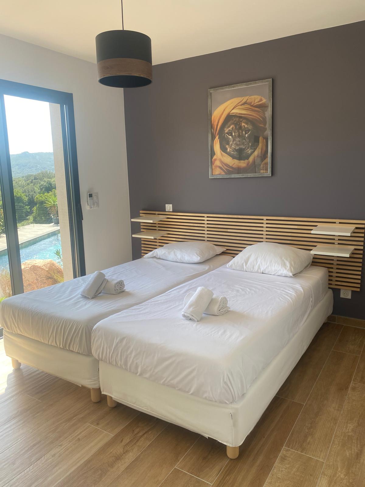 位於科西嘉叢林中心的小巢穴。 這座私人別墅以其精心的裝飾而著稱,恰到好處地融合了真實性和現代性。讓人一進門就感到舒適。 花崗岩岩石與灌木叢之間,有一座私人泳池,配備按摩浴池,四、五月與九、十月期間會加熱,讓您享受最舒適的體驗。 室內空間舒適,設備完善,提供您度假所需的一切。