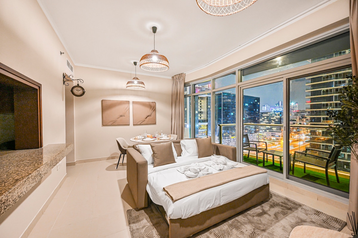 位於杜拜市中心的時尚單間公寓,從私人陽台可欣賞迷人的天際線景觀。 步行7分鐘即可抵達迪拜購物中心和標誌性的哈利法塔,距離世界一流的購物、餐飲和娛樂場所僅幾步之遙。 公寓設備齊全,適合商務或休閒住宿,配備豪華酒店式床單、高速WiFi、智能電視和全套小廚房。 旅人亦可免費使用大廈內的健身室和室外無邊際泳池。