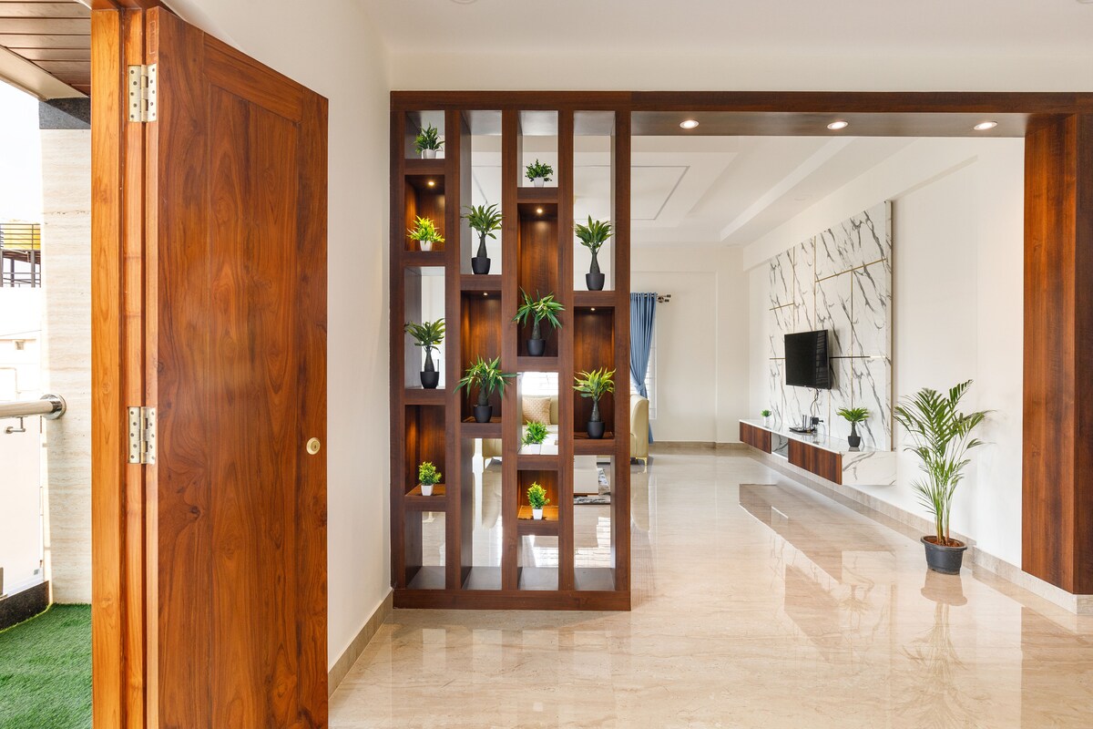 高級1BHK服務式公寓,位於Gurgaon 43區,客廳和臥室設有冷氣,小廚房設有電磁爐、微波爐和餐具。 位於豪華區域,步行即可抵達Gold Souk Mall和Shalom Hills School,距離Millennium City Centre Metro 2.2公里,距離Fortis Hospital 2.1公里。 歡迎外國旅人。 提前入住將視乎可訂狀況而定,並收取500印度盧比,延遲退房也將收取500印度盧比,之後每3小時加收500印度盧比。