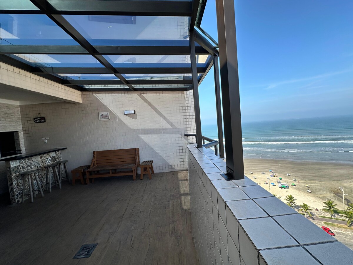 Localização privilegiada, há 250m da praia Aviação. Apartamento novo, limpo, e pensado com carinho para te receber! Além disso, todos os serviços essenciais e turísticos, como mercado, farmácias, bares, restaurantes, padarias, estão a um passo de distância. Será um prazer receber você e sua família! OFERECEMOS: SACADA COM CHURRASQUEIRA ELÉTRICA, 2 VAGAS NA GARAGEM, 2 ELEVADORES, 2 QUARTOS COM PROTEÇÃO DE TELA E VENTILADORES, LAVANDERIA , SALA DE ESTAR, COZINHA COMPLETA E 2 BANHEIROS (UM SUÍTE).