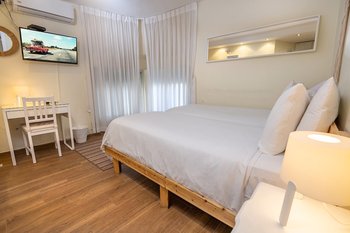 這間單間公寓非常適合商務旅客。 它是現場的兩個單位之一,位於內蓋夫沙漠,酒店精品DesertB ,提供輕鬆的氛圍,同時它就在Beer Sheva附近,沙漠山提供空調、WIFI、衛星頻道的電視。 Desert Hills是一間舒適的單間公寓,配有雙人牀、桌椅、小廚房、裝潢獨特的步入式淋浴間。 兩個單位共用大型藍色露天泳池。