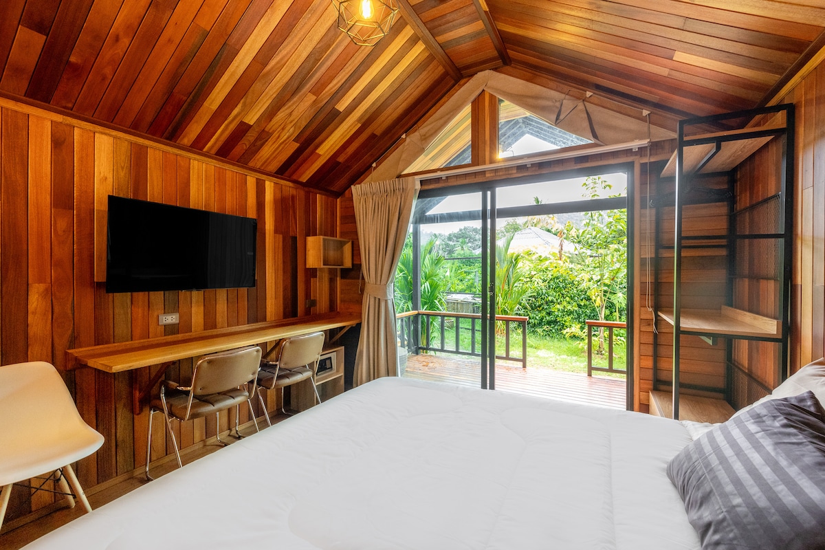 我們的Gecko Jungle Bungalow坐落在大自然中,距離拉邁海灘只有很短的車程,景觀非常好,完全私密,並有機會體驗島上獨特的野生動物,包括猴子、松鼠等。 這間單間公寓是自助式,配有小廚房(配有陶瓷餐具、餐具、水壺和冰箱)、冷氣、配有室外淋浴的私人浴室和陽台。 入住這間美麗的叢林平房,讓自己沉浸在大自然中。