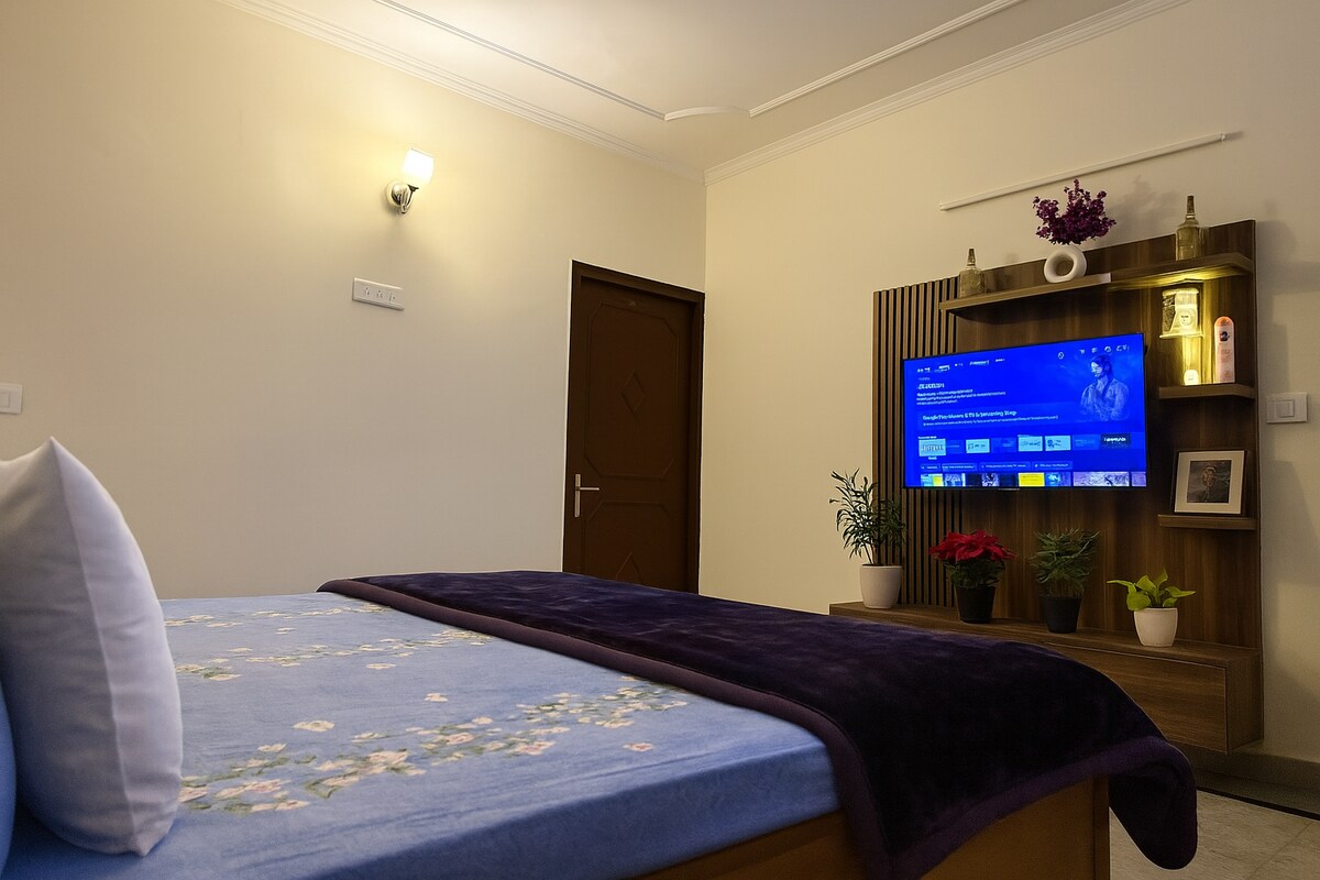 現代化全套公寓,位於南德里市中心的New Friends Colony ,提供高速Wi-Fi和免費Netflix、Amazon Prime和Hot-star。位於有門禁的公寓區,有24小時保安,可免費在街上停車。設有2間臥室、獨立的餐廳和客廳,配有時尚的陽臺和設備齊全的廚房,配有所有洗衣設施。步行即可抵達地鐵站、醫院和購物中心,包括麥當勞、達美樂和肯德基等所有主要餐廳